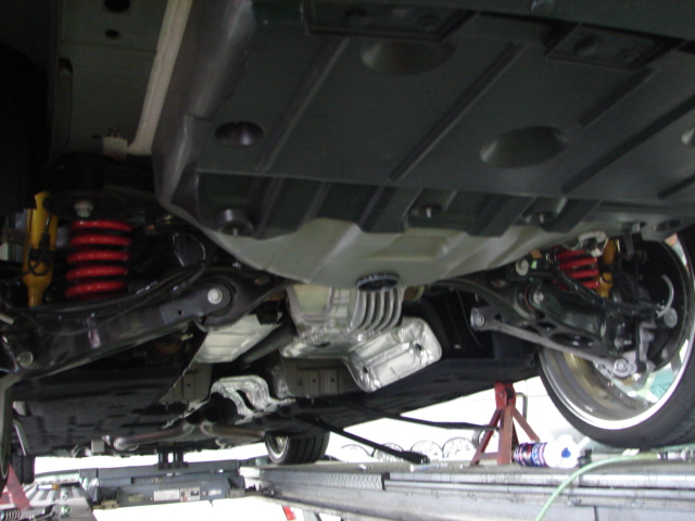下回りをチェック (^○^) 2013年2月26日 クライスラー, ダッジ, ニュース&最新情報 ツイート 新型 300C SRT-8がリフトにあがっていたので 下周りをチェック(^-^) フロント エンジン下はカバーでおおわれています。 4輪ブレンボーブレーキシステム 裏側はこんな感じです。 デファレンシャルは ゲトラグ 社製 !!! ゲトラグは ヨーロッパ車のハイパフォーマンス車によくつかわれています。 日本ではGTRなどのマニュアルミッションも。 (^-^) 足周りの構造は メルセデスにかなり近いです。 (同じかも。。。)
