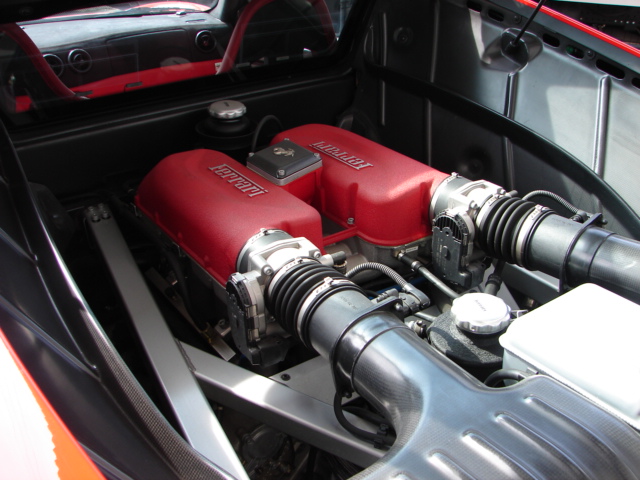 ミドにマウントされる心臓部の3.6リッターV8は、最高出力426ps/8500rpm、最大トルク38.0kgm/4750rpmを発生。360モデナより26psパワーアップされた。