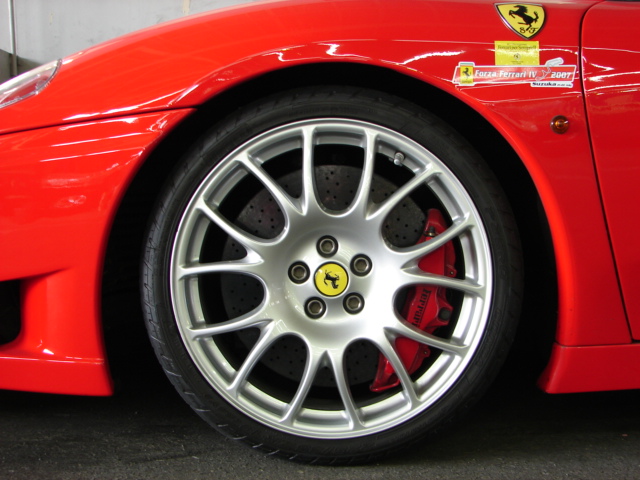 150×1800mmのウィング装着などにより、360モデナ比でダウンフォースを50%アップ。一方、Cd値は0.335と360モデナと同レベルにしたという。カーボンミラー、「チャレンジタイプ」の19インチホイールなどが外観上の識別点だ。